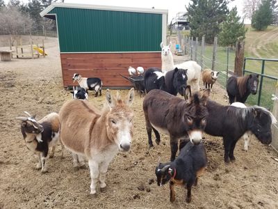 Everything included with the small and medium zoos + mini donkey(s), mini ponies, llamas/alpacas, mini cow when available and potbelly pig(s)**. Approximately 15-20 animals.